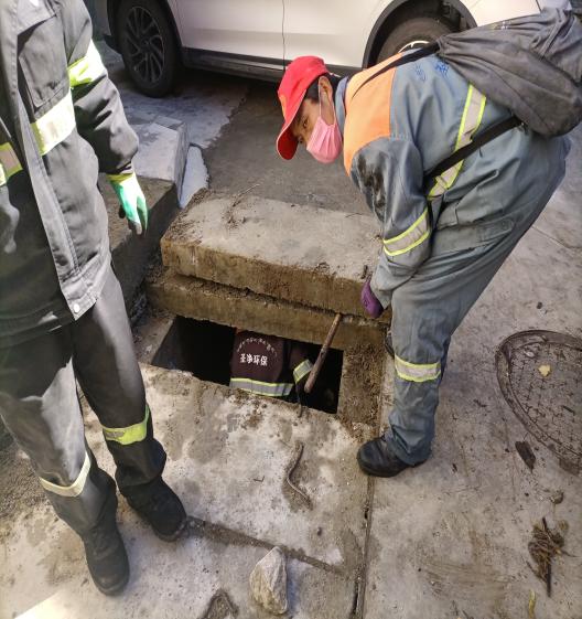 近期由于亞東縣強降雨,造成部分下水道被石子及垃圾嚴(yán)重堵塞,縣城道路出現(xiàn)大面積積水情況,即影響了市容市貌,同時給市民行車安全帶來了較大的安全隱患,因此,清理工作刻不容緩。從下雨的第二天上午開始,我公司環(huán)衛(wèi)工人積極開展工作,歷經(jīng)三天時間對聯(lián)通營業(yè)廳、糧食局等附近堵塞路段的下水道進行疏通和除淤清理工作。在積水路段,水位上升至人行道上,排水口位置不清楚,徒手疏通的情況對于環(huán)衛(wèi)工來說是家常便飯,一名環(huán)衛(wèi)工人說到“平時工作中我們都會配備火鉗等工具,但是碰到暴雨,排水口吸力較大,這些工具起不到作用,最快的方式就是用手去摸去掏”。經(jīng)過幾天的辛苦勞作,城區(qū)主次干道大部分路面積水基本排清,道路恢復(fù)原貌,消除了安全隱患,方便了市民生活。